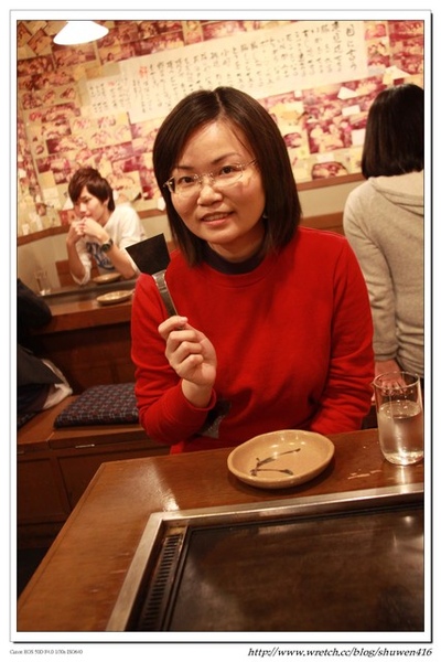 不過今晚的菜單有點為難我們了!不懂日文的我們,這幾天在日本點餐都是靠著圖片點餐,今天沒有圖片,只有菜單,看的我們一愣一愣的,有些傻眼了!但熱情的老闆似乎察覺我們的窘境,馬上親身過來招呼。老闆問我們從哪來的?一知道我們是從台灣來的,馬上溜了幾句中文,並建議我們可以點兩份餐點再一起分食,幫我們點了豬肉口味的大阪燒(¥600)和炒麵(¥600),還一直用中文向我們保證「好吃」,真的是非常可愛的一位老闆。