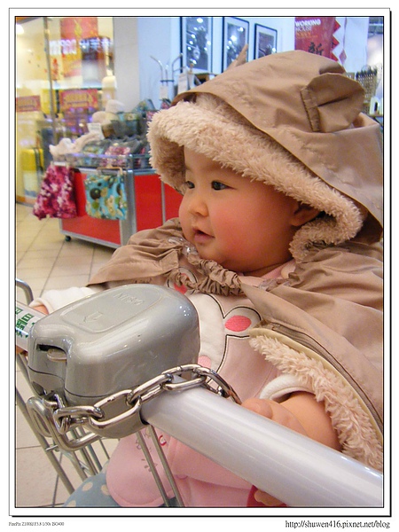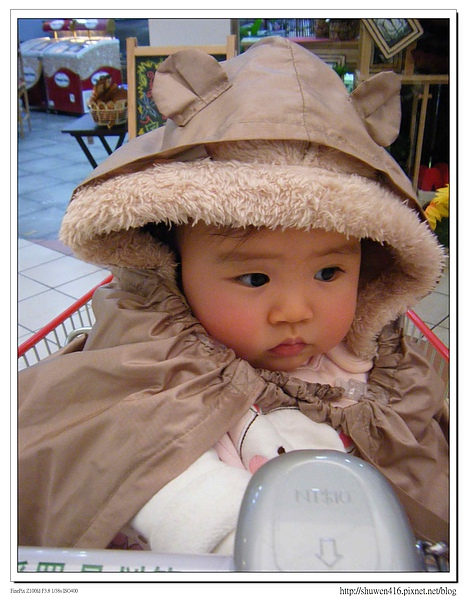 帶小安安到大賣場去逛逛,碰到冷氣強勁或是生鮮蔬果區的低溫,還可將披風披在她身上,平時出門亦可當小被子使用,不只保暖還很方便喔!