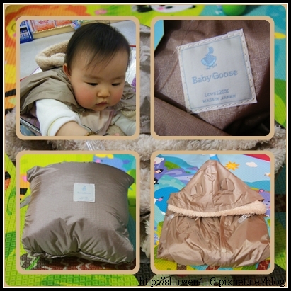 後來看到BBH的寶媽從日本帶回這件Baby Goose寶寶防水擋風披風,簡直讓我驚為天人,我要的需求他幾乎都符合了,二話不說馬上購買。