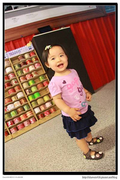 逛完老街,一家人轉往彰濱工業區的緞帶王織帶文化園區參觀,這邊除了介紹緞帶的製作過程,也用緞帶製作了許多應景的周邊商品,尤其廠拍區販售琳瑯滿目又便宜的緞帶,媽咪手滑買了兩大袋,以後小安安的髮飾就不假手他人,由媽咪親手作啦!