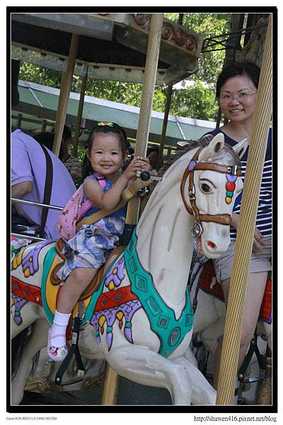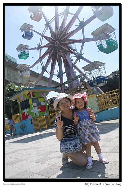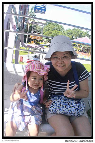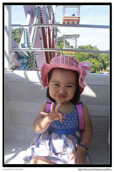 今日前來,主要目的就是帶著小安安探訪和巧虎一樣的遊樂世界,除了入場門票30元,要搭乘碰碰車、咖啡杯、摩天輪等遊樂設施,都得再另購每張20元的遊樂券搭乘,小安安一搭上摩天輪,瞧她的表情樂的很呢!
