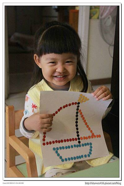 瞧小安安費時半小時完成的帆船貼紙拼圖,是不是很有趣呢!