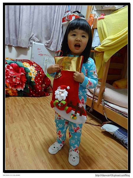 聖誕節來臨前,不免俗的買了聖誕襪送小安安,並告訴她聖誕老公公的故事,這小妮子為了得到想要的豆豆,每天都告訴自己要當乖寶寶,對於聖誕節自是非常期待,聖誕傳奇真是每位孩子童年的夢想呀!