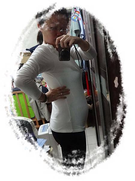 肚子已經微微隆起,前兩週開始換穿輕鬆點的孕婦裝,目前體重增加1.5Kg,繼續保持呀!