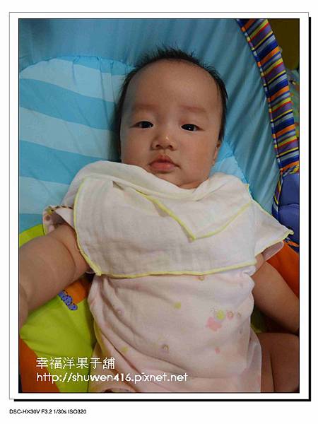 但這小子從滿兩個月後睡覺到一半醒來,常常愛東看西看,不願再趴回去睡,這天竟在小床上自己就從原先趴睡翻成仰躺,而且還是靜靜的來沒哭哭,初次翻身讓自己嚇了一跳,可能想著視角怎麼都不同吧!呆住了幾分鐘,隨即開始抬腳踢踢玩得不亦樂乎,這覺應該睡不著了~XD