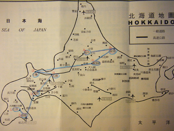 以上是這五天的行程,但是拉車的行程比較累人,從北海道地圖就可以看到我們一下跑到道東,一下跑到道南,不過來回班機皆是搭乘華信北海道直飛專機,整架飛機都是台灣團,包機的好處就是回程行李沒有每人20公斤的限制,所以大家都大包小包的,我們這回也買了很多名產和戰利品,身上的肉也多了幾公斤,每天都在拼命吃美食,接下來會陸續寫文和大家分享囉!